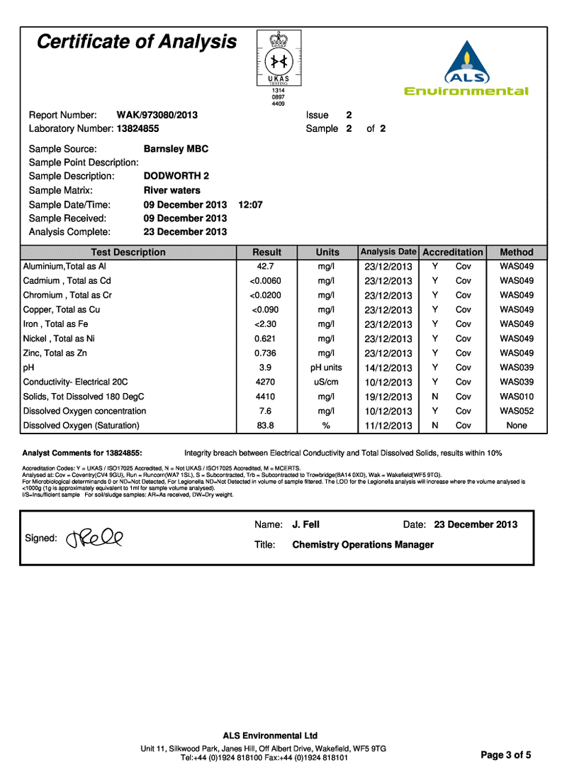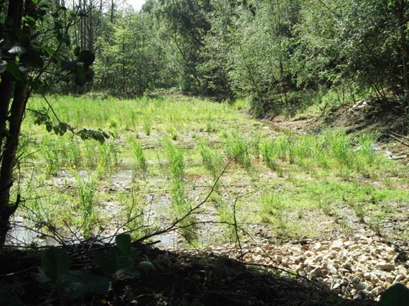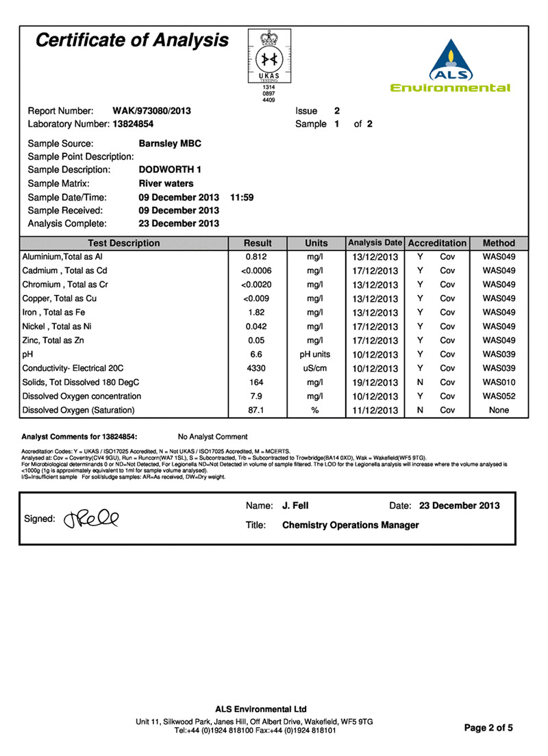 The pH of the inflow was 3.9 and 6.6 for the outflow. The reduction in metals is 90%. The full system included a second reedbed. Were-built this second system just before Christmas. Once we get some good weather, we can get some photos.