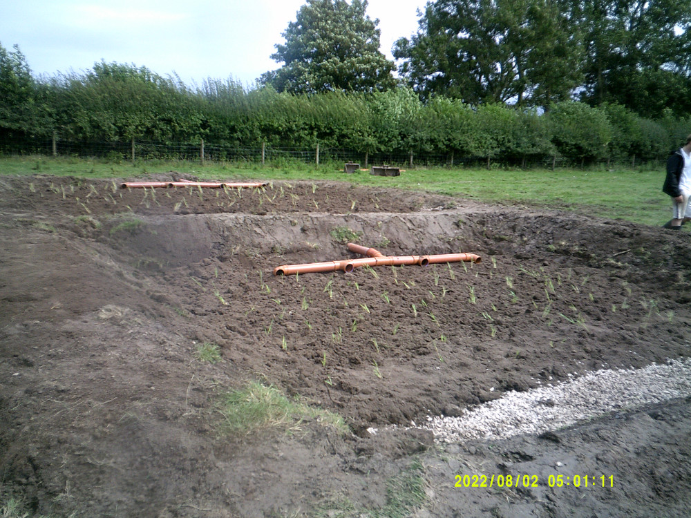 The original reedbed was built as a 200m² system. This was divided into 2 parallel systems, each with a top and bottom bed. So there are 4 beds in total.